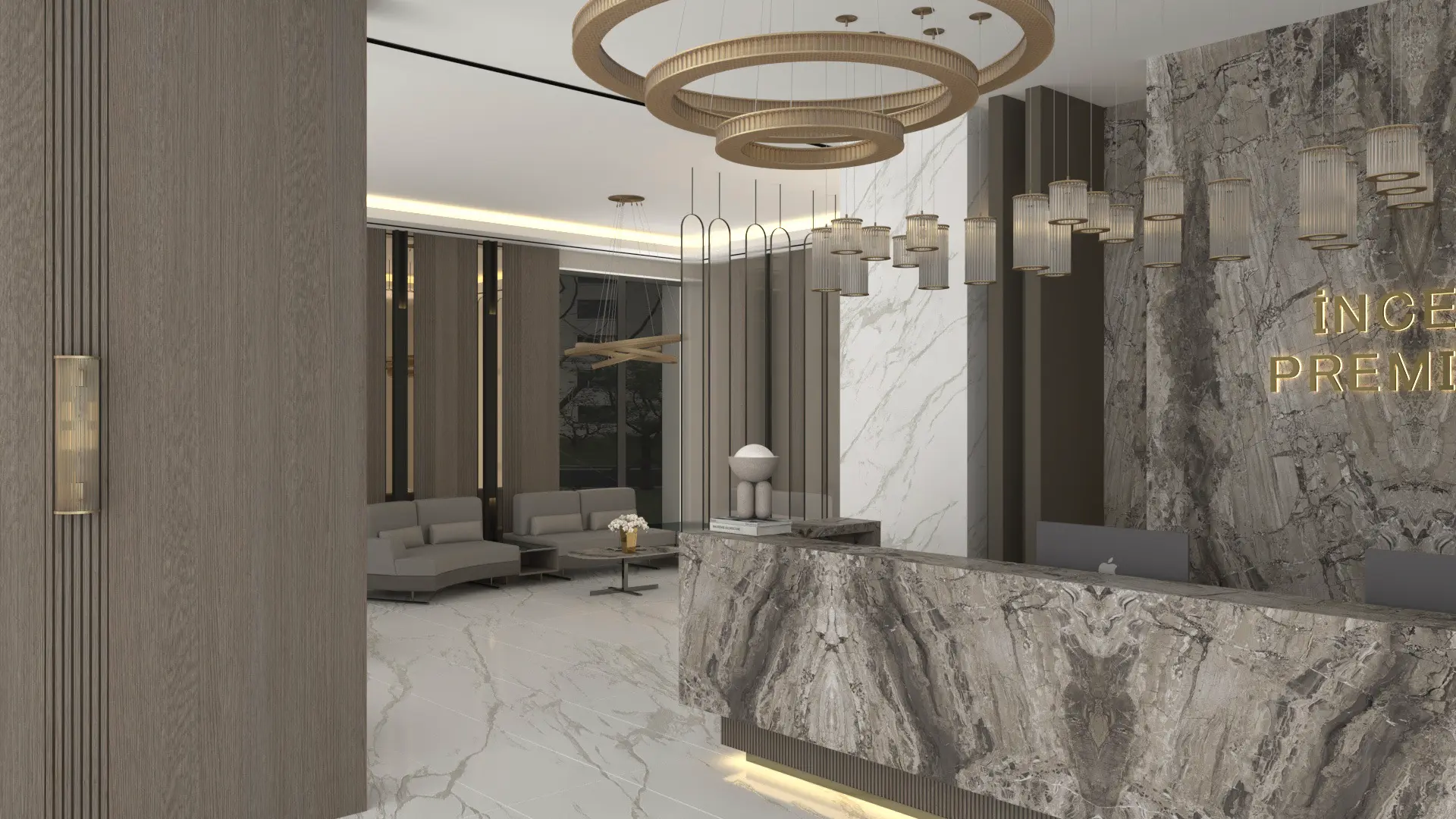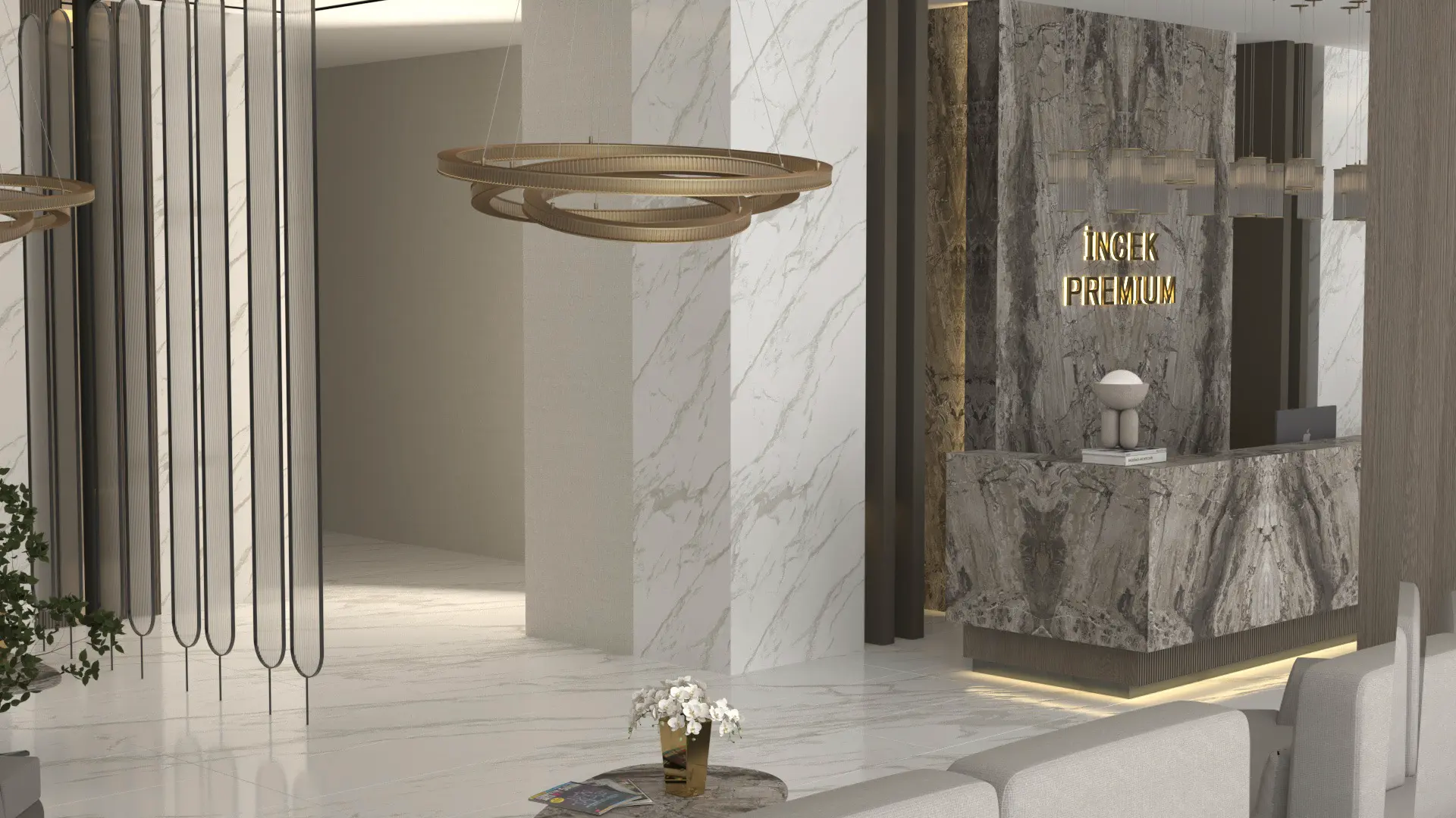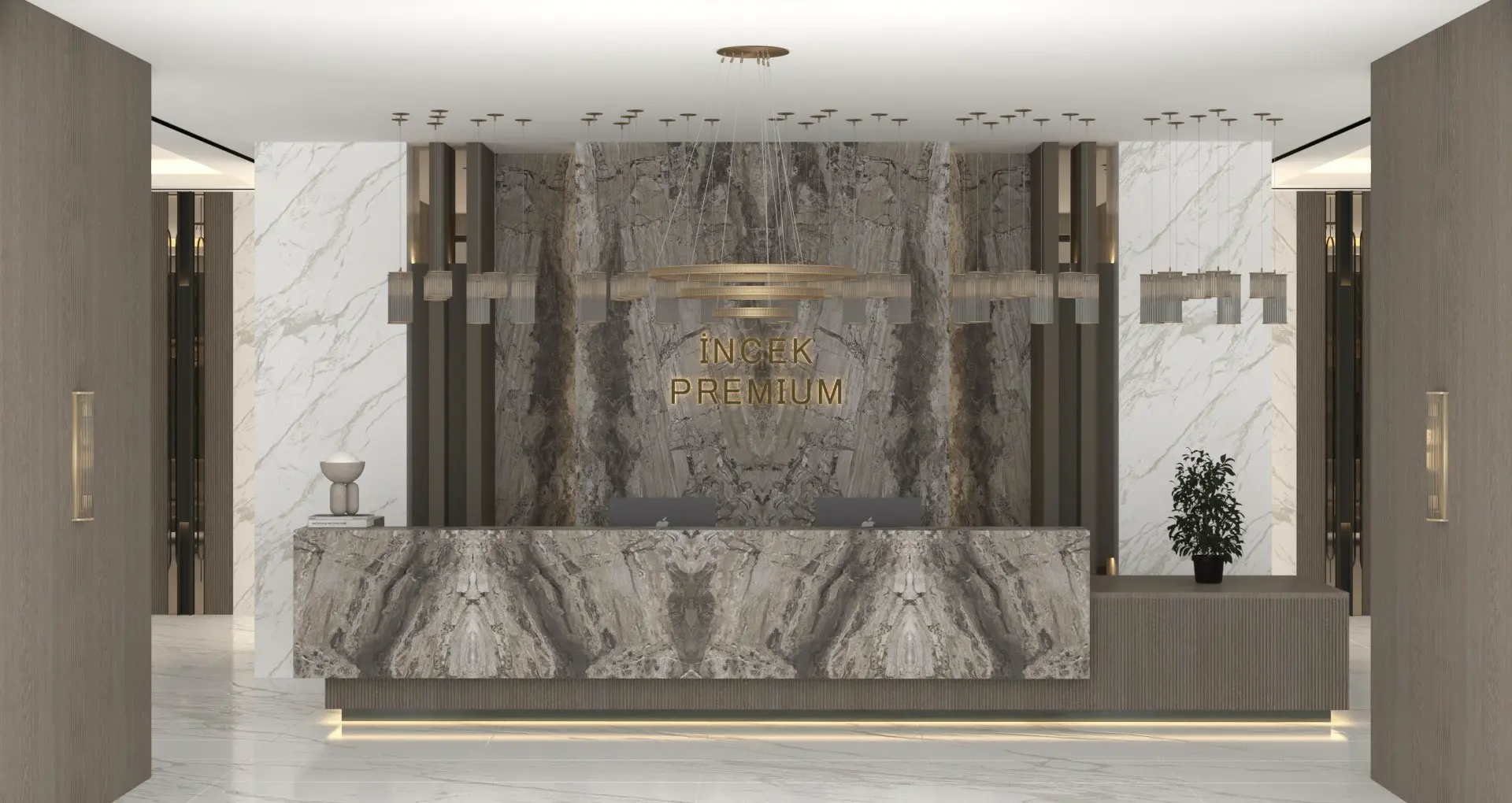 İncek Premium’un giriş lobisi, modern mimarinin zarafetini ve seçkin detaylarını ilk adımda hissettiren özel bir karşılama alanıdır. Doğal ışıkla bütünleşen ferah mimarisi, sıcak malzeme dokuları ve dengeli tasarımıyla mekâna huzurlu bir atmosfer kazandırır. Vertisa’nın kalite anlayışını yansıtan bu alan, ilk izlenimi kalıcı bir yaşam deneyimine dönüştürür.